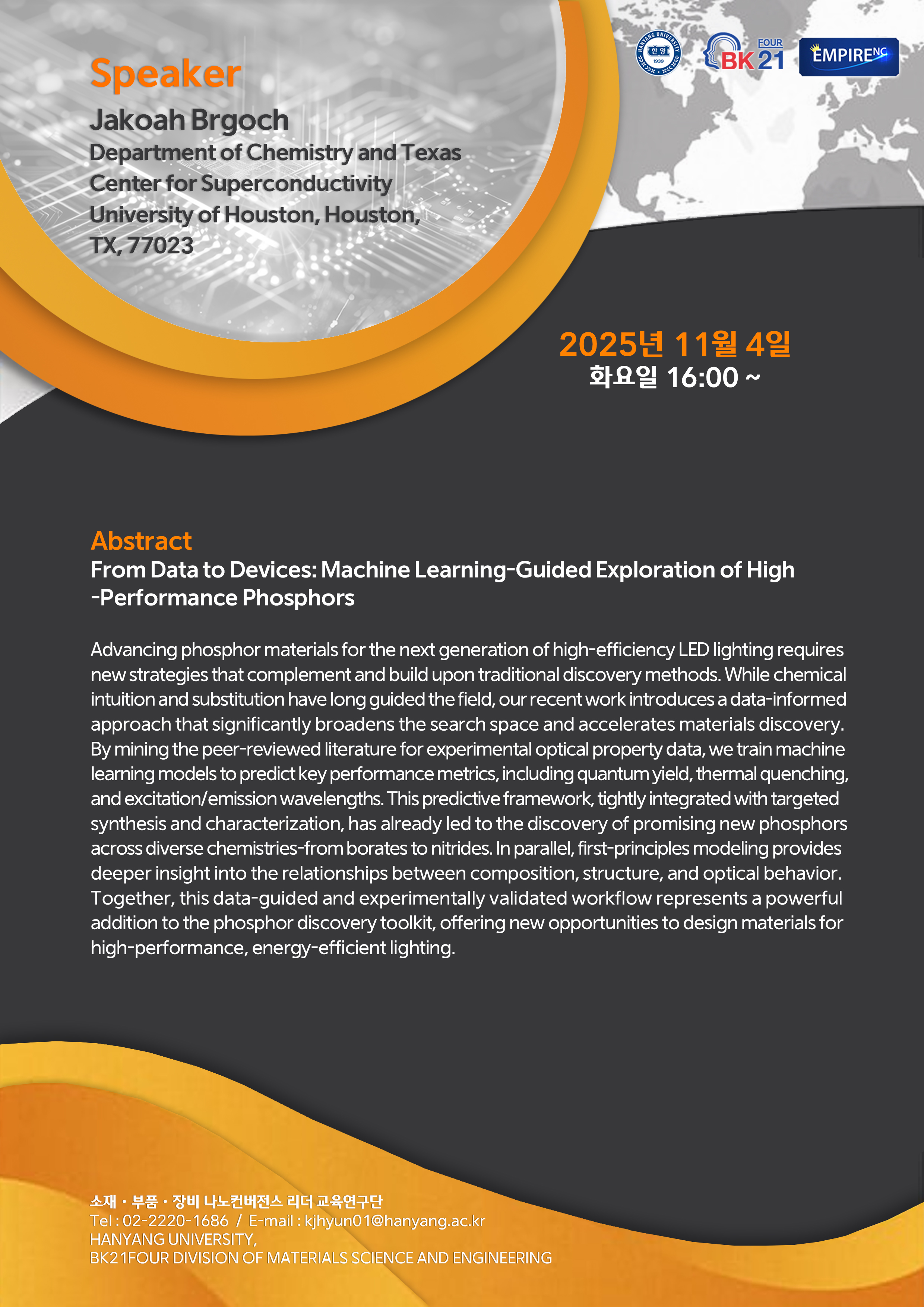 ■ 연사: Prof. Jakoah Brgoch (University of Houston)